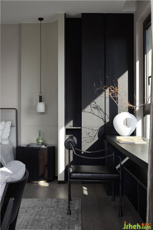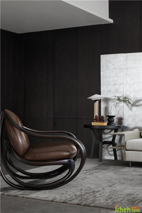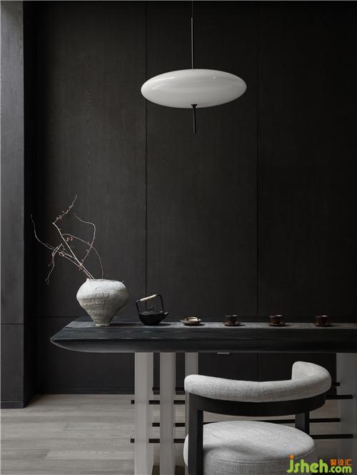 深色木飾面的穩(wěn)重與深沉在不同層級空間中鋪陳、渲染,沉淀為一種“顯于形”的氣質(zhì)表達,猶如夜色中幽暗的水面,靜謐之下,自有一番潛藏的、涌動的磅礴,成為空間的底色。