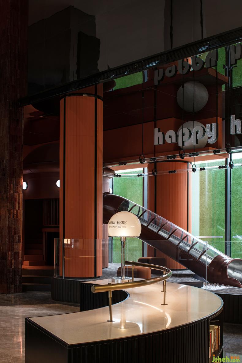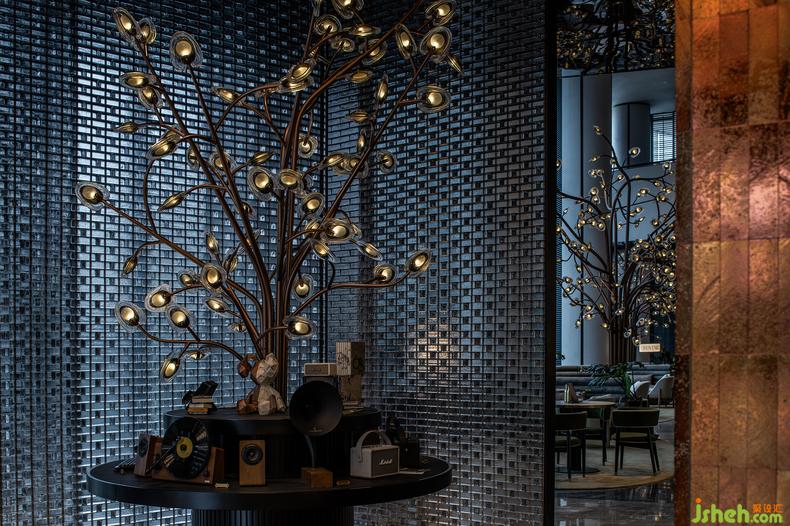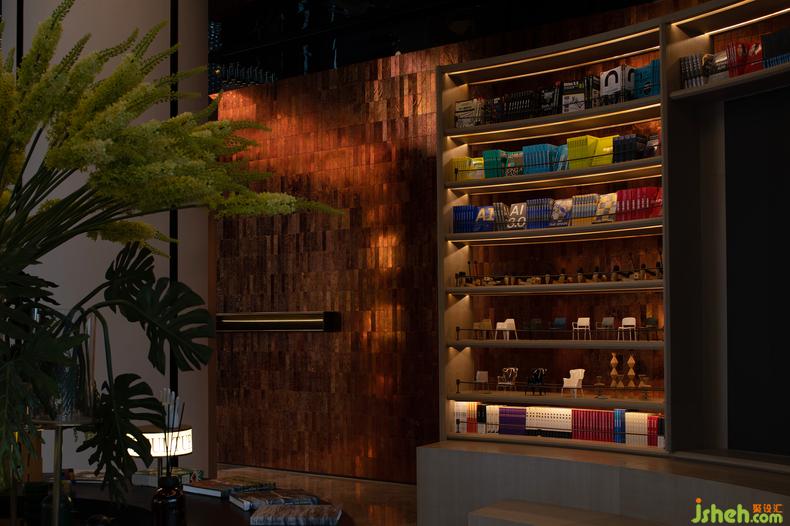 四周的暗調(diào)圍合,將人們張揚(yáng)的視線聚攏于當(dāng)下專注的物品與材質(zhì)本身,感受所感受之物的瞬時(shí)美好。那金屬的精巧豐潤(rùn)、絨布的松軟細(xì)膩,在陽光透過整面高深的格柵窗遺漏的暈影中,顯露出日常的溫潤(rùn)與自在狀態(tài)。