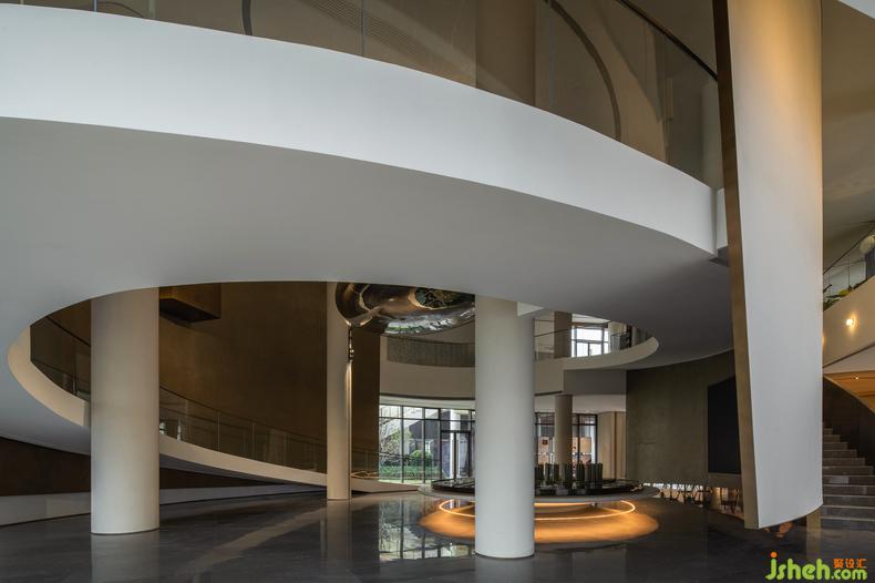 除此之外,便是結(jié)構(gòu)上的精妙所帶來的直接、沖擊式的宏大感受。順著回旋式樓梯爬升,球體在移動中不斷映射出人行進的朦朧姿態(tài),在空間形式的內(nèi)部聚焦,在真實體驗的外部拓展。