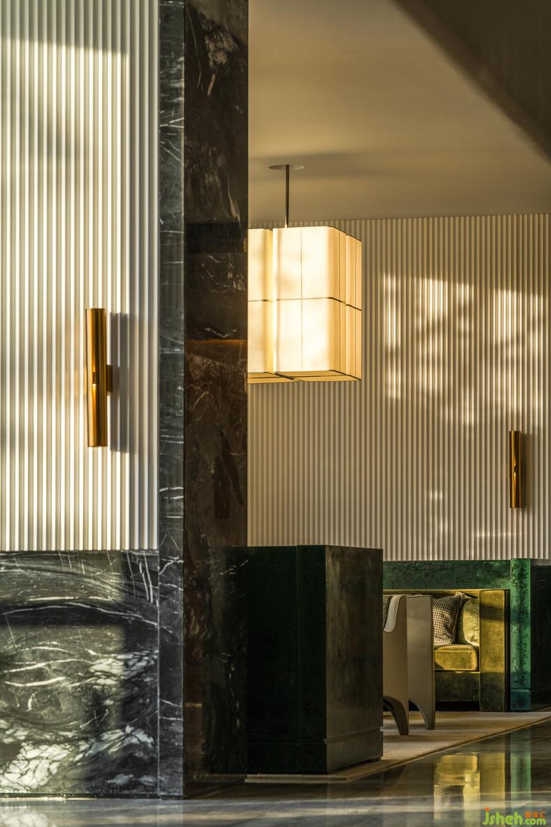 幽深厚密的木飾面、裝飾性極強(qiáng)的金箔、隨時(shí)躍入的光影,與空間體量、尺度上的朗闊如一,設(shè)計(jì)以不同的區(qū)域側(cè)重來展現(xiàn)各空間分區(qū)的進(jìn)入層次。