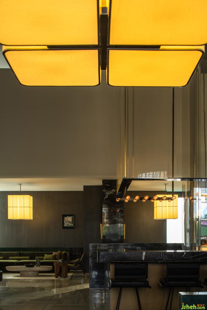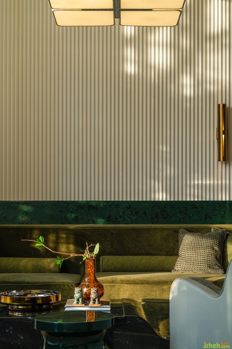 復(fù)古的綠調(diào),與天然大理石漫漶的紋理營(yíng)造的“暗面”,令空間不斷消隱、下沉,將顯于形的器物與光影表達(dá),帶入人們視線與感受的中心。