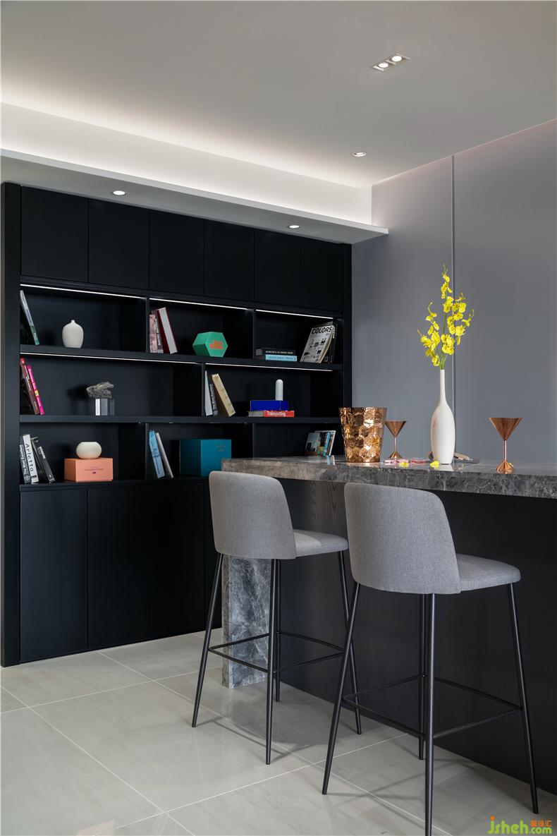 墨色大理石、金屬燈飾呼應(yīng)著灰色的大基調(diào),同時(shí),讓空間簡(jiǎn)約優(yōu)雅而不失清新率真感。室內(nèi)設(shè)計(jì)師