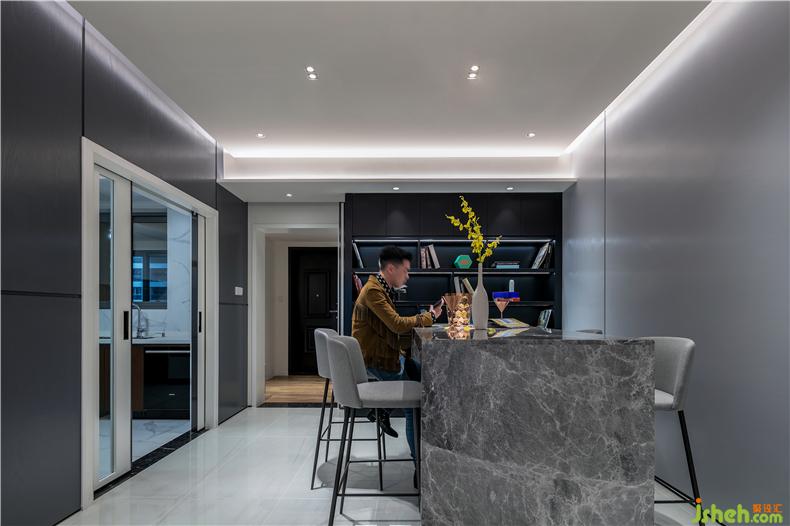 拉門是餐吧和廚房友誼的關(guān)鍵橋梁。當(dāng)“硝煙”開始彌漫,兩扇拉門成功阻斷煙火氣。室內(nèi)設(shè)計(jì)師