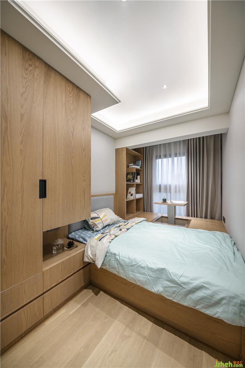 Junmei design - ascension design case hides the scenery in the house and the owner's bedroom. Gray and yellow are classic and eternal fashion. The changing scenery outside the window makes fashion never out of fashion.