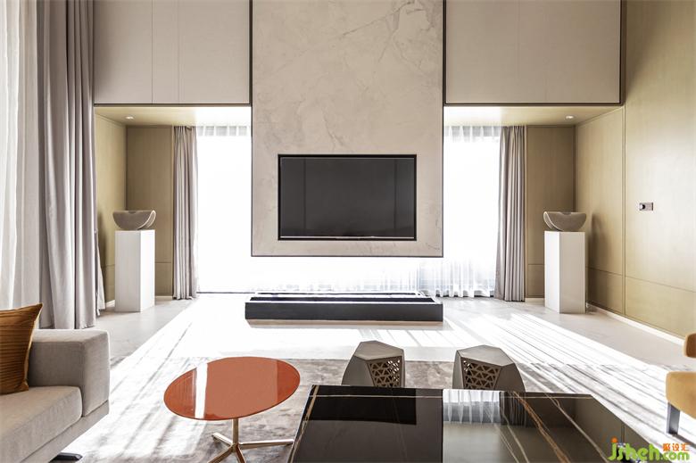 在整個空間中顏色使用暖色系,使整個空間更加的具有生活氣息,少量使用愛馬仕橙的顏色點綴空間,使空間給人的感覺更加的活躍,也使空間具有個性和溫度。