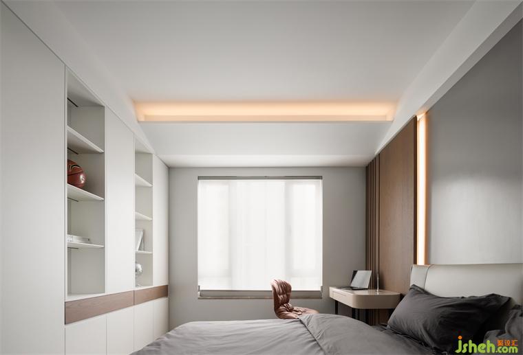 次臥,以溫潤的木飾面營造質(zhì)樸卻涵容深遠(yuǎn)的美學(xué)格調(diào),復(fù)式裝修設(shè)計(jì)讓居者于詩意的平衡中覓得身心的放松與靈魂的舒張。