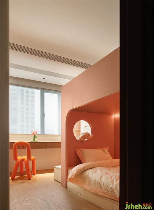 女孩房活潑明朗,柔軟的粉和熱烈的橙為居住帶來賞心悅目、撫慰心靈的絕佳體驗(yàn),讓空間真正地成為了溫情自在的精神港灣。