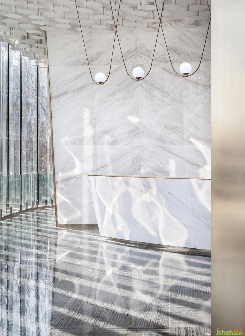 “內(nèi)建筑”將空間整合打破空間的原有面貌,重塑空間的組合構(gòu)成:將一直三層中心貫通,更為高聳的空間極具風(fēng)范氣勢(shì)。室內(nèi)設(shè)計(jì)師