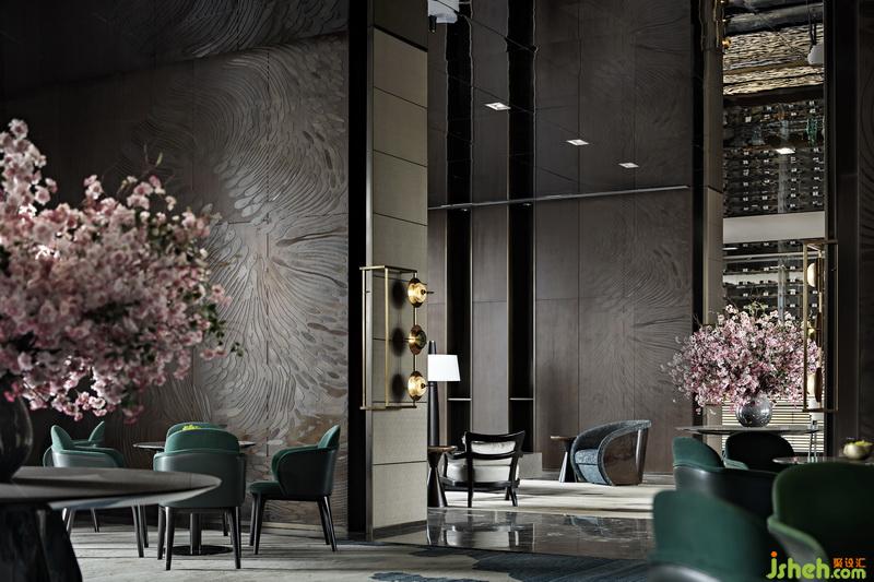 充滿懷舊情調(diào)的墨綠與暖棕色墻體相呼應(yīng),將偌大的空間緊密銜接起來,達(dá)到混融貫通之境。