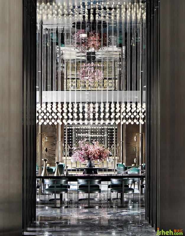 細(xì)密懸垂的水晶珠簾在書吧區(qū)上方撐起一道朦朧帷幕,框定界線的同時(shí)也為空間注入浪漫與復(fù)古,仿佛將記憶帶回到遙遠(yuǎn)的懷舊年代。