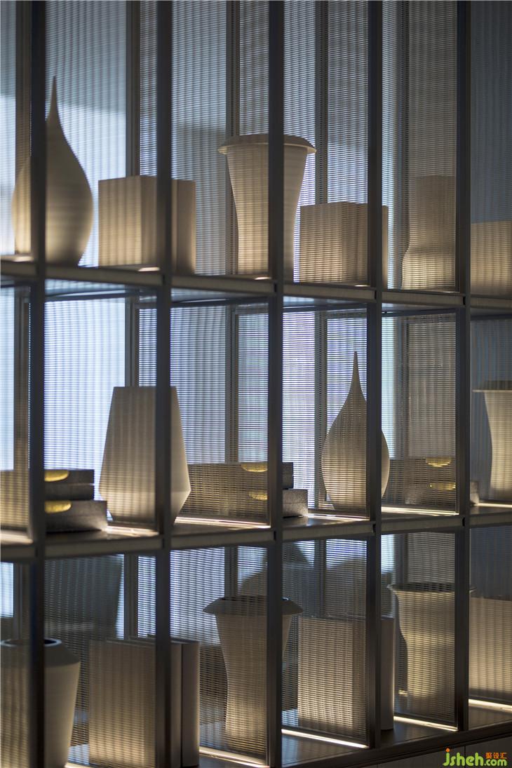 設(shè)計(jì)師在空間的回溯中探索本質(zhì)與源泉,從干練的線條到藝術(shù)化的裝飾,無一不透露著精致與唯美的氣息。濃郁東方色彩的圖案將神秘氣息氤氳在空間里。前臺的若翡翠玉墜般的藝術(shù)吊燈,菱形切割的表面流光溢彩,近看似月光下的湖面漾起的粼粼漣漪。自然的質(zhì)感與藝術(shù)的氣質(zhì)在此融為一體。