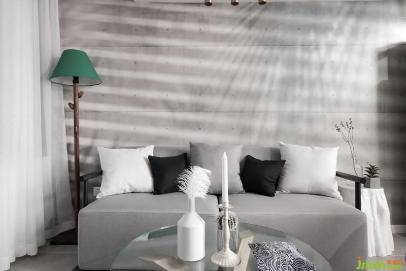 客廳式灰色為主要簡約設(shè)計,表達(dá)光影的一般效果為極具畫面感的立體空間