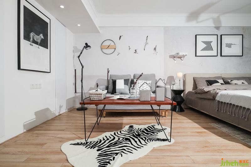 斑馬紋地毯減弱了原木色地板的甜膩。