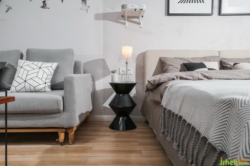 具有線條感的黑色床頭柜給整個(gè)柔和空間帶來(lái)了一點(diǎn)科技感,恰恰符合業(yè)主的職業(yè)屬性