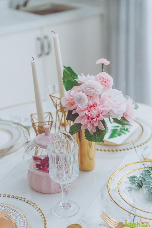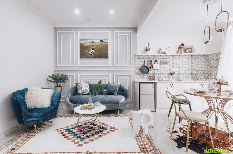 沙發(fā)散出業(yè)主少女心的一面,滿鋪地毯減弱了大理石地磚的冰冷。