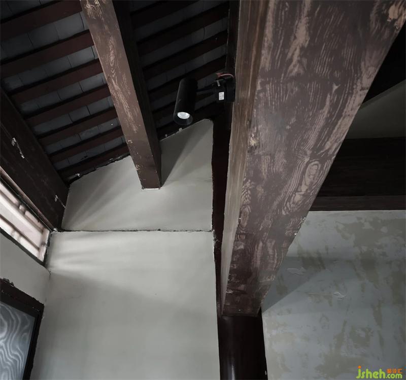 酒店設(shè)計(jì)之初,因?yàn)榭陀^條件的限制 ,室內(nèi)部分墻體,瓦片坡屋頂,以及一些梁柱等既有的結(jié)構(gòu)均需要做保留。