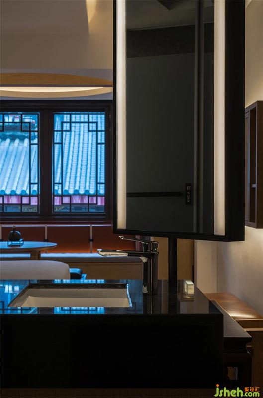 大廳天花發(fā)光格的設(shè)計(jì)靈感來(lái)源于古建的藻井,運(yùn)用現(xiàn)代的手法及語(yǔ)言進(jìn)行重新詮釋。通過(guò)可調(diào)節(jié)的燈光賦予空間無(wú)限的可能性和想象延展。