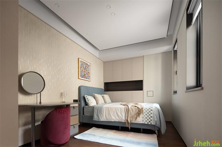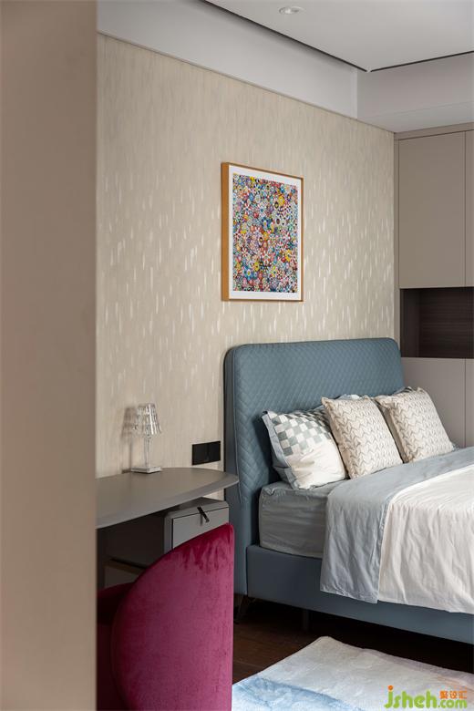 優(yōu)雅、溫馨是主臥給人的第一感覺,空間以粉色為主色調(diào),親膚感的材質(zhì),附以可愛的吊燈,中海望京府復(fù)式家裝設(shè)計體現(xiàn)出空間層次,使整個空間安靜而不失溫馨。
