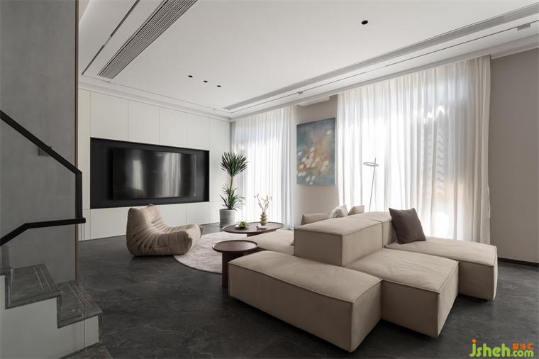 客廳通透的全落地窗戶,隨著陽光的律動不自覺地放松了整個身心。