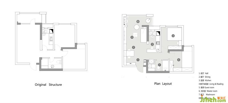 1.Due to the demand for real life, do to structure transform, put forward the complex space concept of life, the original kitchen wall is dismantled aisle space form two-way using mesa space, on the table at the same time increase the function of the wash basin, optimized the original function of toilet partitions, the arrival of the refrigerator has, finally let closely on the corridor to form function, space to relax state of everyday.