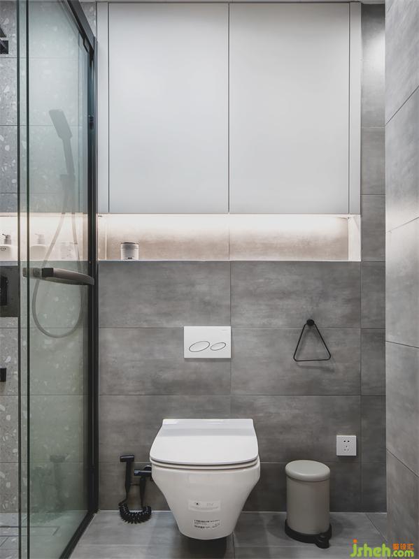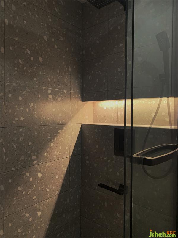 馬桶上方預留燈光格,延伸至淋浴間,馬桶上方預留柜體做收納物品使用;