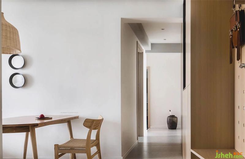 這個戶型的特殊性就在于大部分空間的朝向在北向,武漢家居設計之初功能結構上的調整之后,開始重新思考材質和色彩上的搭配,以及通透的光線如何可以最大化的讓北向的活動廳可以獲得最好的光進入,材質在光的引入后能達到舒適,干凈,明亮的居住感;
