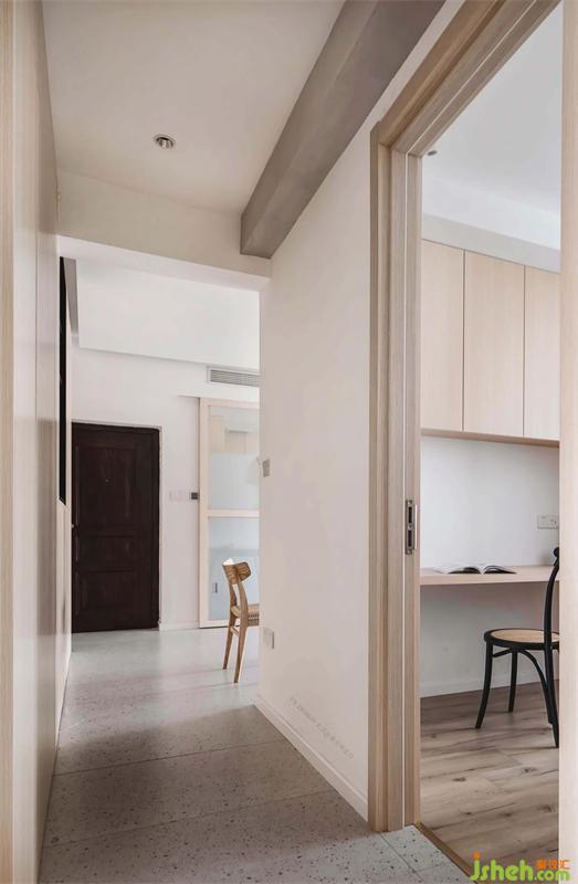 廚房相連客廳空間里,采用通透的玻璃隔斷,讓廚房的光線也能進(jìn)入客廳交融在一起。