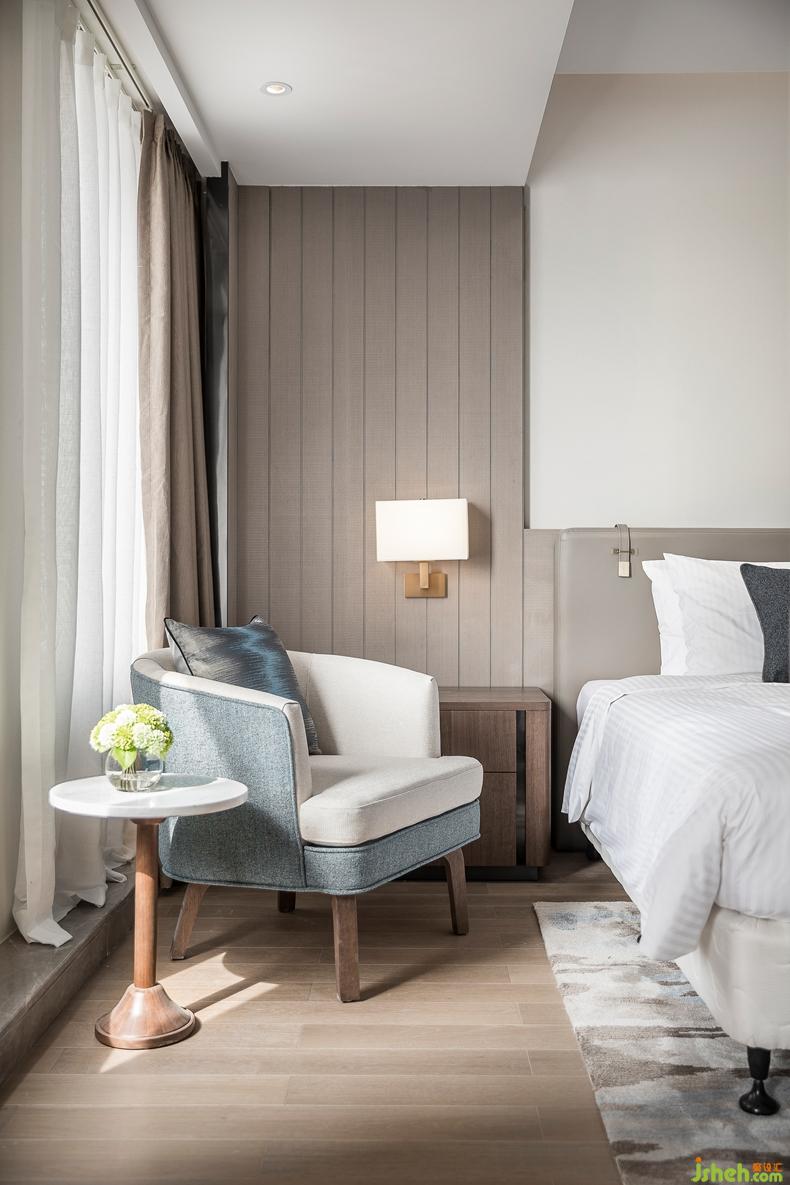 簡(jiǎn)潔的石材,溫暖的木紋與墻面纖維壁布刷白的質(zhì)感,保持柔和的色調(diào),凸顯空間的澄明,表現(xiàn)視覺(jué)中心的含蓄和虛無(wú)。酒店設(shè)計(jì)選材配飾注重生態(tài)環(huán)保,微妙的紋理使穩(wěn)重與輕盈相映相依,喚起環(huán)境低調(diào)的魅力與無(wú)窮的回味。
