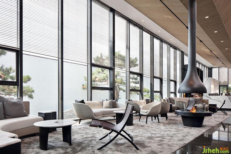 在建筑到室內(nèi)的空間構(gòu)想中,我們采取了北實(shí)南虛的處理手法,室內(nèi)設(shè)計(jì)師北面以實(shí)墻隔斷噪音,南面則引入景觀,忽略室內(nèi)外邊界,穿插內(nèi)外庭院,實(shí)現(xiàn)不斷變化的連接與互動(dòng)。