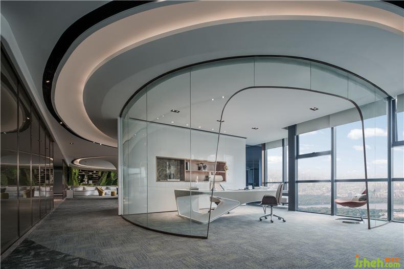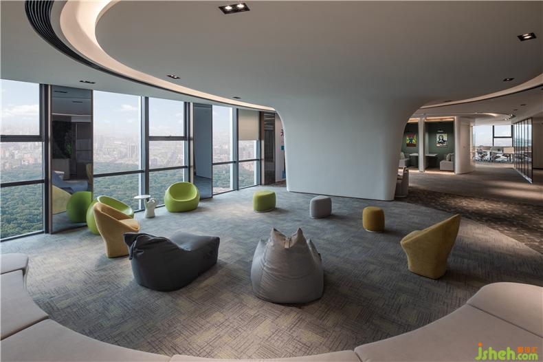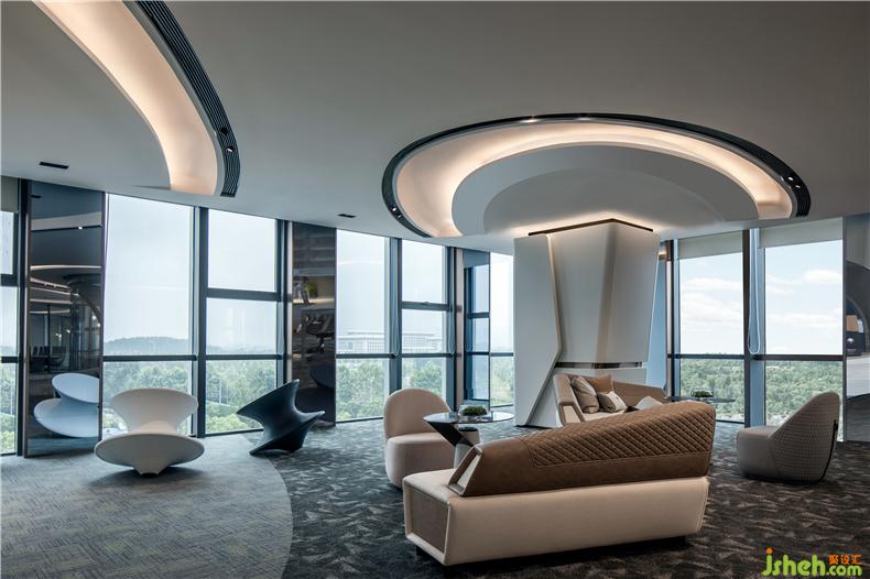 透亮的玻璃窗,爭取自然光最大限度的滲透量,引進外景,城市的日與夜變成室內一幕,將城市之景盡收眼底。同時將獨立辦公室與開放辦公區(qū)隔開,但又保留兩者之間的互動性,拉近管理層與部門員工之間的距離,鼓勵彼此在舒適自然的氛圍中研究與討論,收獲信息,激發(fā)靈感,亦可在工作之余放松休憩。