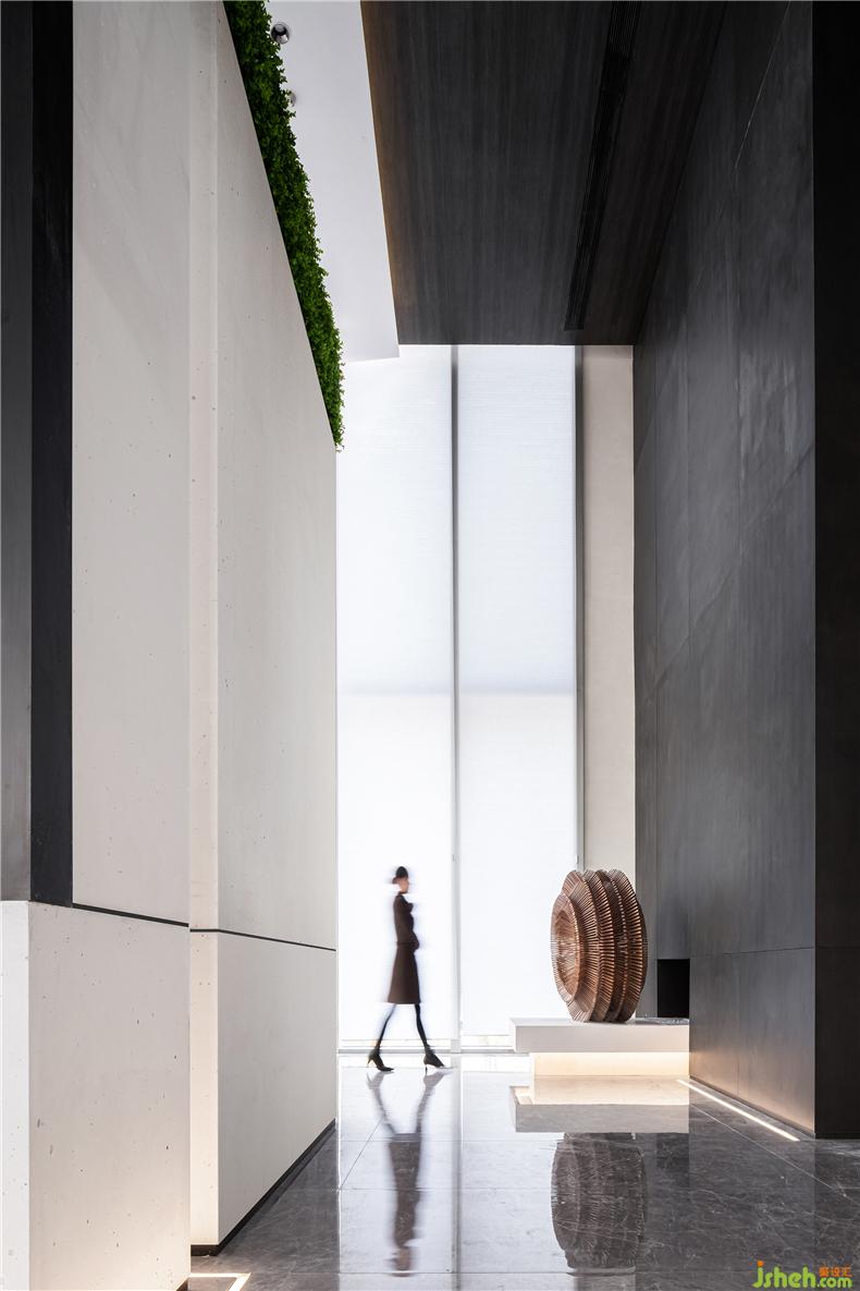 同時(shí),利用層高,創(chuàng)建立面結(jié)構(gòu),打造體塊厚重感,并結(jié)合材質(zhì)、色彩、光線的應(yīng)用,室內(nèi)設(shè)計(jì)師實(shí)現(xiàn)豐富、飽滿而有情感與張力的空間體驗(yàn),成為本案的挑戰(zhàn)與機(jī)遇。