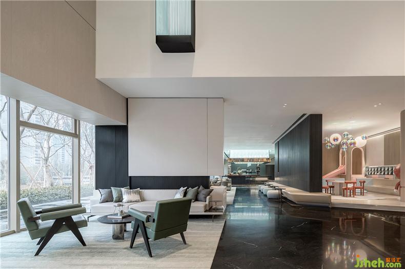 在體現(xiàn)產(chǎn)品精工細(xì)筑的同時(shí),設(shè)計(jì)師希望這個(gè)空間能夠使得未來的生活成為可想象、可觸摸、可感知的具象客體。在石材構(gòu)成的大氣磅礴的空間格局彰顯不凡,又用溫暖的木色和充滿人情味的功能設(shè)置來?yè)嵛磕切┰谌粘I鐣?huì)中砥礪前行的業(yè)主們。