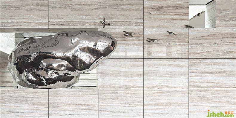 開(kāi)闊的接待空間,藝術(shù)雕塑《飛躍巔峰》把超然的銀色金屬體態(tài)擬于成“山”,與庭院的水景相呼應(yīng),金屬材質(zhì)的飛鳥帶入自然的生動(dòng)感 ,形成“居山而樂(lè)水”的藝術(shù)意境。藝術(shù)雕塑靈感來(lái)源于泰山,國(guó)泰民安為生活幸福的基礎(chǔ),寓意峰層客群對(duì)生活與夢(mèng)想的不斷超越,體現(xiàn)了“讓生活更美好”的美麗愿景。以當(dāng)代手法詮釋傳統(tǒng)文化精粹,造就空間的靈動(dòng)性,生活感。