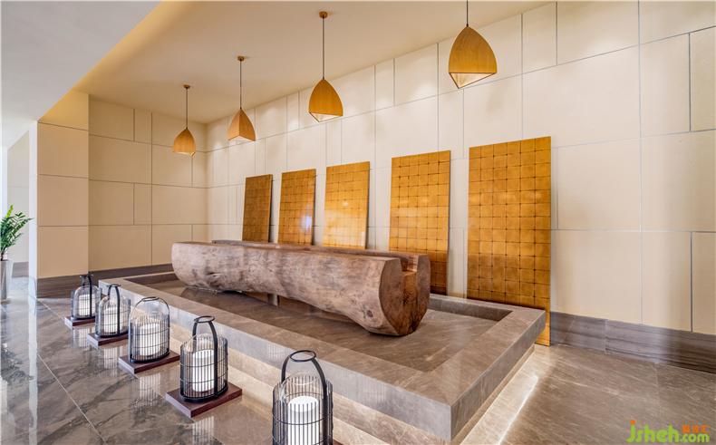 稻田餐廳的空間感、線條感及陳設(shè)藝術(shù)感都能透過“意”去參透東方那種含蓄而深遠(yuǎn)的美學(xué)修養(yǎng)。裝修設(shè)計陳設(shè)色調(diào)與濕潤的木色主調(diào)和諧統(tǒng)一,編藤織物以起伏的形態(tài)穿插于空間的流動之中,演澤空間的色香味俱全。酒店設(shè)計