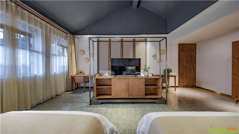 尋求隱逸的生活,哪怕在物質(zhì)層面上并不如意,精神世界里卻十足快適。HTD對(duì)民宿的空間設(shè)計(jì)與陳設(shè)設(shè)計(jì)的設(shè)計(jì)目標(biāo)都是追求“極簡(jiǎn)+極適”。將現(xiàn)代感與度假悠閑融為一體。整個(gè)室內(nèi)以沉穩(wěn)的灰色調(diào)為主,搭配濕潤(rùn)木色。裝修設(shè)計(jì)在其襯托之下,由各種材料制成的表面顯得特別富有質(zhì)感。特地使用一系列自然色調(diào)的家具,覆蓋了整個(gè)空間,增添了自然氣息,讓住進(jìn)來(lái)的住客最大程度地感受到本地的獨(dú)特風(fēng)情?;畛錾搅种拢尵襁€鄉(xiāng)得以憩息。