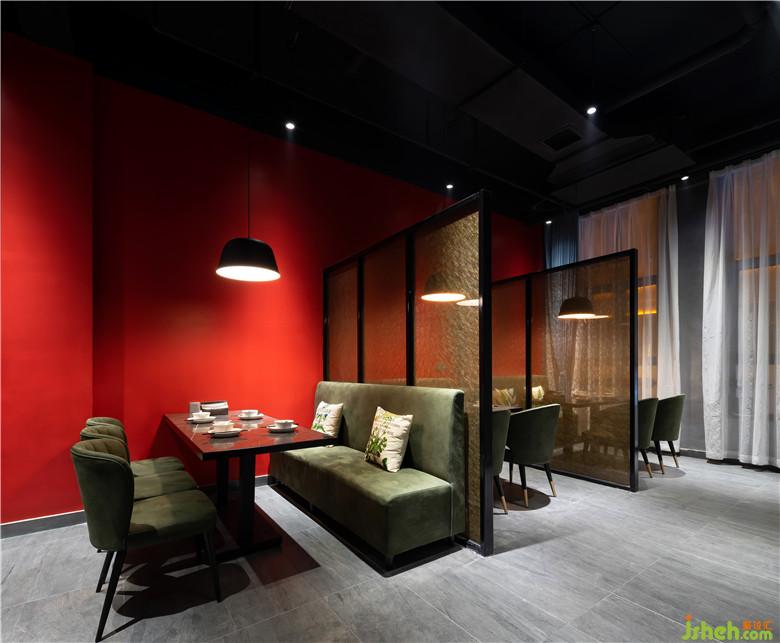 整個(gè)餐廳的裝飾風(fēng)格采用現(xiàn)代時(shí)尚,輕奢風(fēng),符合年輕人的審美。整體色調(diào)室內(nèi)設(shè)計(jì)師以深色為主,窗簾座椅則是藍(lán)色、沙色、墨綠色、橘色,使整個(gè)餐廳并不單調(diào),在提亮視覺的同時(shí)營(yíng)造出一種時(shí)尚、活力與溫馨感。