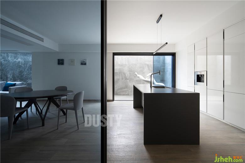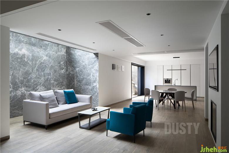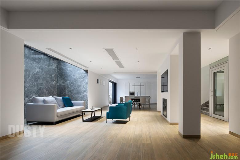 別墅裝飾每一個設(shè)計需在滿足功能性的需求上的同時呈現(xiàn)美,又能符合居住者的真實需求。在此設(shè)計理念里,我們將原始結(jié)構(gòu)里在一層的餐廚,移置到負一層,使負一層的使用率達到最大化,廚房的空間也變得更為寬敞。色彩上,藍色的加入,與整體的灰白色調(diào)共同營造出輕奢的質(zhì)感。