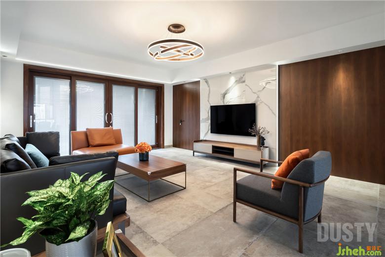 空間線(xiàn)條流動(dòng)的變化,家居色彩的協(xié)調(diào),室內(nèi)設(shè)計(jì)師讓空間擁有動(dòng)感時(shí)依然優(yōu)雅。胡桃木飾面的背景墻,木制優(yōu)雅含蓄的線(xiàn)條加上雪花紋大理石瓷磚,讓客廳氣派又不失精致。