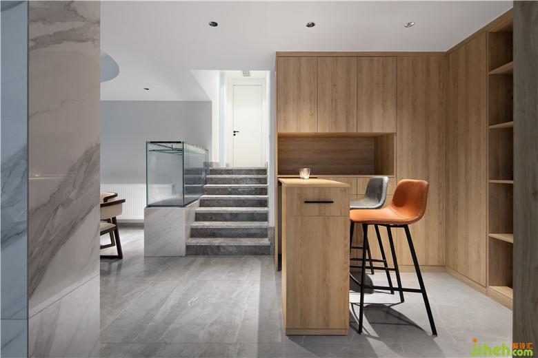 在樓梯位置設(shè)計(jì)了魚缸區(qū)域,滿足了女主人喜歡養(yǎng)魚的愛好。
