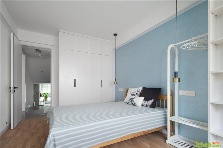 次臥是小孩房,室內(nèi)設(shè)計(jì)師改造成他最愛的藍(lán)色和貓,十分有愛的空間。床頭旁的簡(jiǎn)便衣架,讓脫下的衣物,有了歸處。