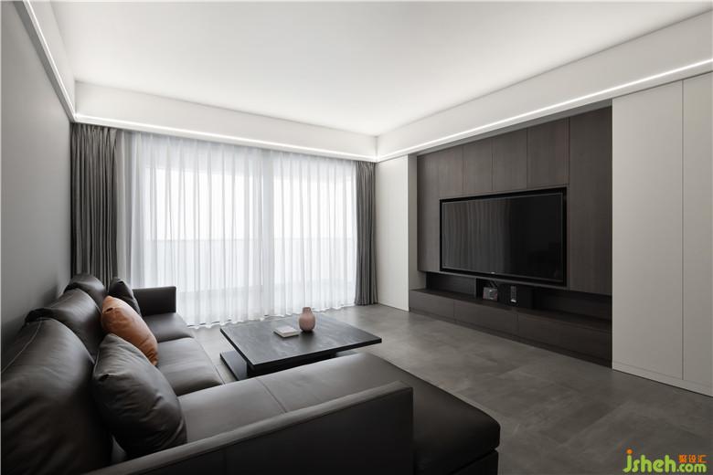 灰地,白墻,胡桃木色元素,為空間的主體,3500k的色溫使家更加明亮。