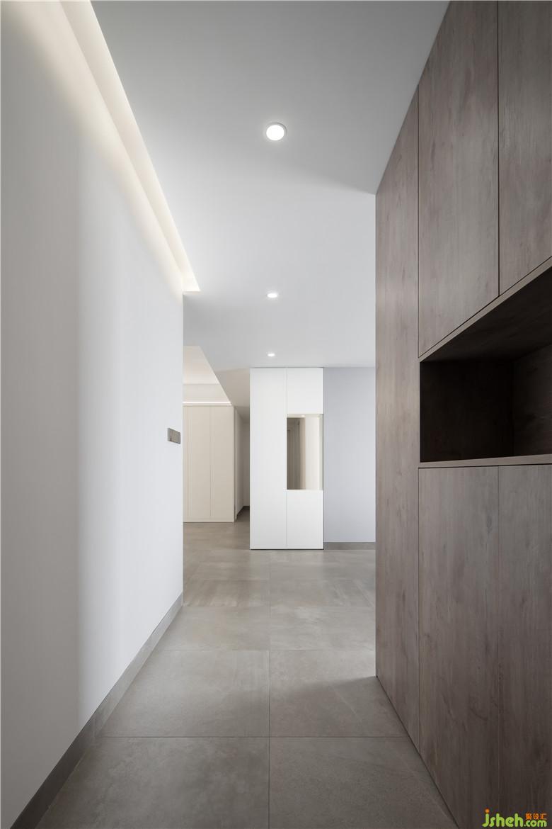 整體摒棄復(fù)雜的造型,注重收納。沒(méi)有主燈的客廳,沒(méi)有做背景墻造型,除了中央空調(diào)設(shè)備幾乎沒(méi)有吊頂??床怀龉褡拥暮圹E,只看到墻。