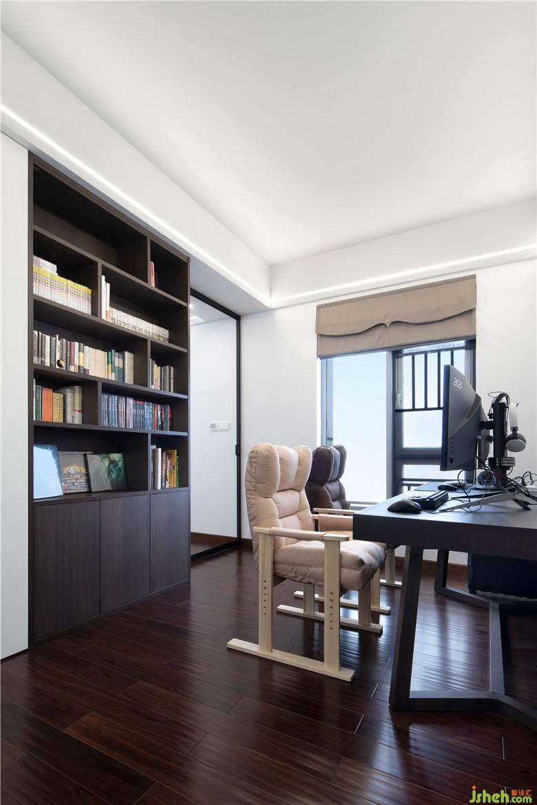主臥里有一扇奇妙的玻璃門,打開(kāi)進(jìn)入書房的世界,關(guān)上又是獨(dú)立的兩個(gè)空間,互不影響。