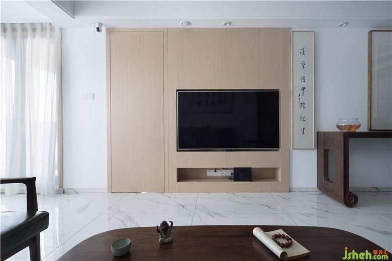 電視和背景造型設(shè)計(jì)也完美的融合一體,讓整個(gè)空間更為舒適,沒有突兀感。
