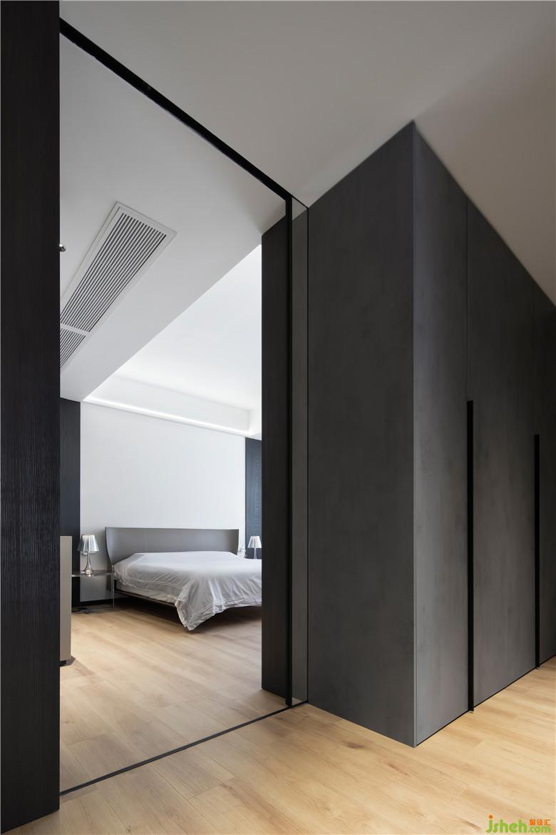 在設(shè)計主臥時,考慮到居住者對空間私密性和通風(fēng)的需求,設(shè)計了一道有趣的門,關(guān)上時,從外面看是一面鏡子,這時整個空間是密閉的,打開時,讓主臥與外面的起居室有了聯(lián)系。