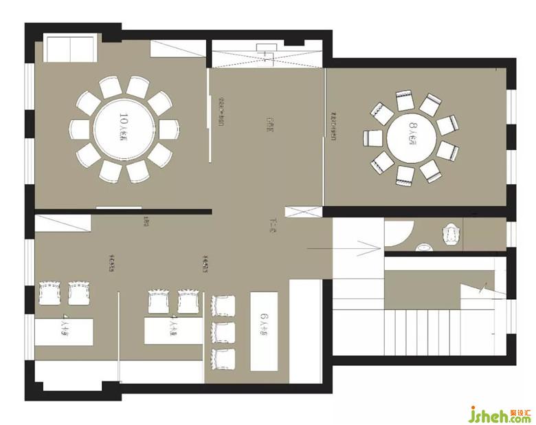 包廂區(qū)域沿用和一樓空間同類型材料,