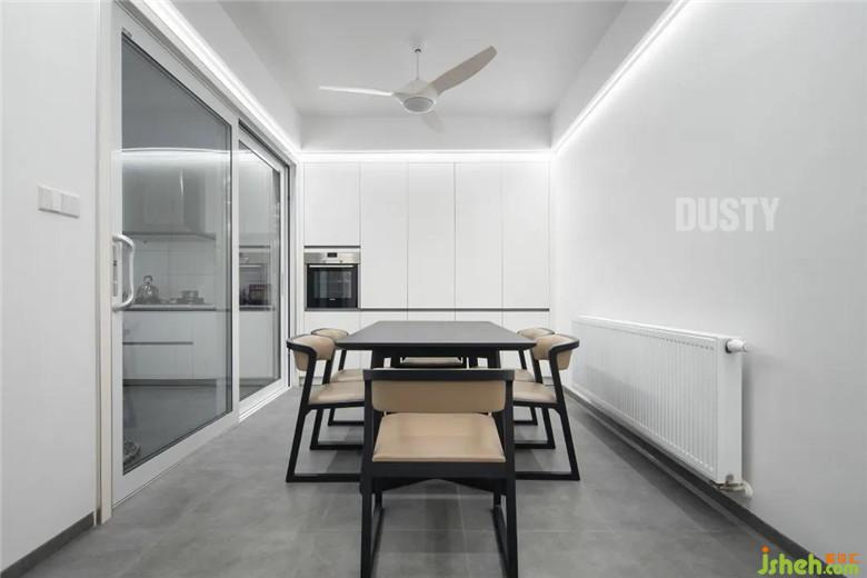 全房裝修公司做減法,無(wú)主燈,取消所有的吊頂及繁雜的造型,十分干凈利落。