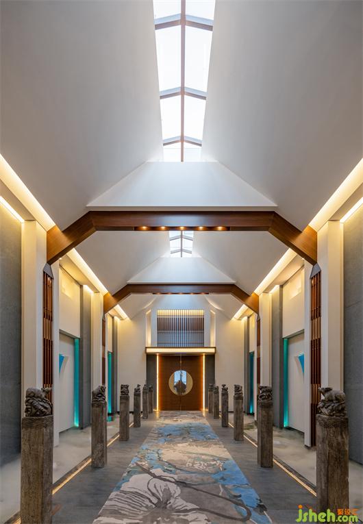 此會所設計項目為主人接待和家族聚會型會所,建筑面積約800㎡。是集餐飲、品酒、茶道、香道、瑜伽、SPA、琴棋書畫等休閑養(yǎng)生功能為一體的空間。以12生肖的傳統(tǒng)文化符號為載體,象征著和諧與平衡;以“空山新雨后,天氣晚來秋。明月松間照,清泉石上流。”的空靈澄凈為基調(diào),表達主人對《山居秋暝》無憂無慮的恬靜生活的向往。