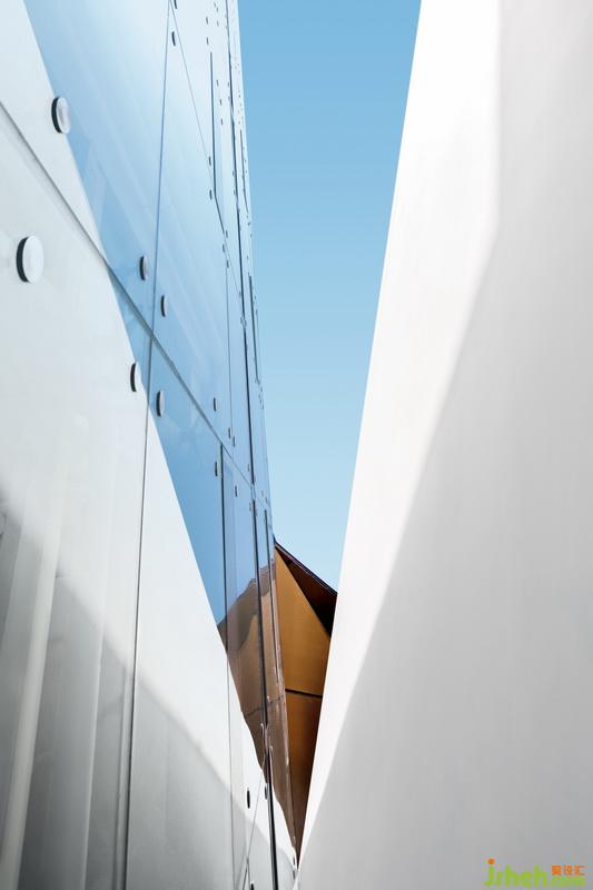 我們細(xì)細(xì)考慮對(duì)于空間和時(shí)間的截取,營造完整的視覺體驗(yàn)。不規(guī)則的三角形幾何體由軋花不銹鋼拼接而成,材料表面的處理, 通過天氣環(huán)境的變化建筑表皮也隨之變化,材料的特性在不同的角度呈現(xiàn)不同的反射,也就是當(dāng)代語匯的多樣性。以人與空間的尺度來講建筑能使我們室內(nèi)設(shè)計(jì)師更清楚設(shè)計(jì)的意愿。隨人的走動(dòng)建筑的形體及反射都在產(chǎn)生變化,在不尋常的集合矩陣中發(fā)揮作用,保護(hù)自然力量對(duì)空間的參與,讓“人”也能活真正成為空間靈活的局部構(gòu)件,形成輕與重、動(dòng)與靜的不同維度多樣性。