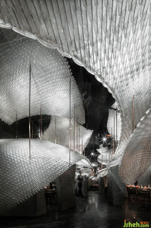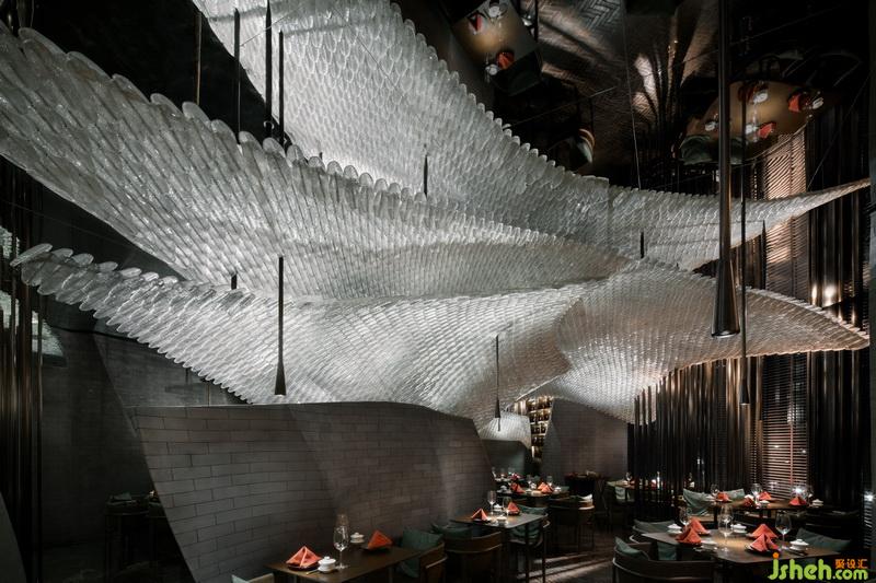 一道不銹鋼磚墻的縫隙;一顆螺絲;一片羽毛的角度;在設(shè)計師無數(shù)次同業(yè)主交流中得到啟發(fā)。這間極具戲劇性的餐廳,每一次細(xì)節(jié)打磨,都應(yīng)經(jīng)得起體驗者近距離的把玩。每一處獨(dú)立的空間,都是驚艷,就像一道色香味俱全的川菜。讓食客流連其中,精神上的味蕾在大腦綻放,回味無窮。